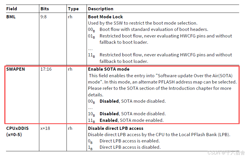 这里边一组MARKERLx、MARKERHx和CONFIRMATIONLx、CONFIRMATIONHx对应一种SWAP的实例,用户最多可以配置16个,但是,SSW(Startup Software )只选择最后一个有效的执行。