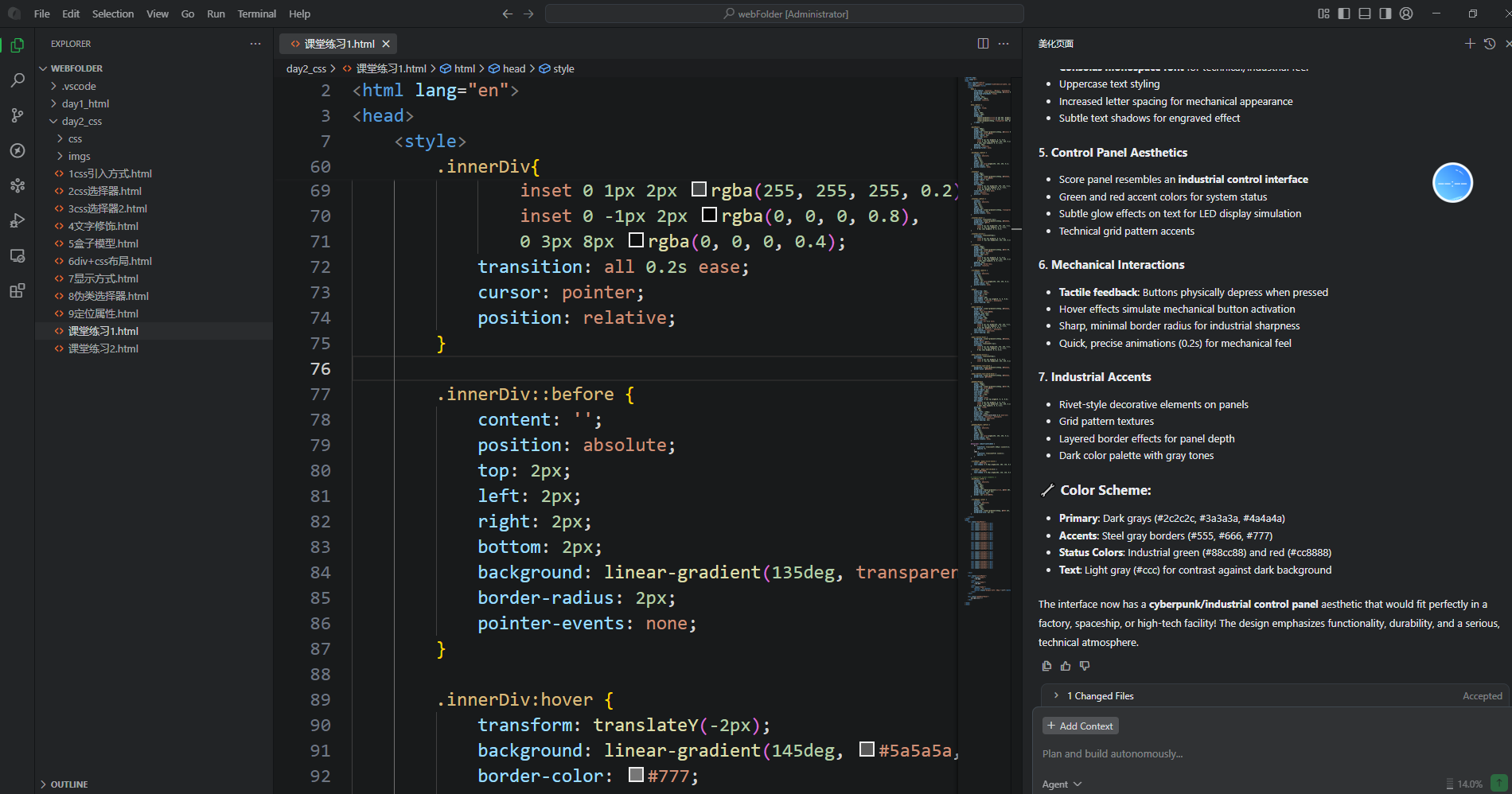 <!DOCTYPE html> <html lang="en"> <head><meta charset="UTF-8"><meta name="viewport" content="width=device-width, initial-scale=1.0"><title>Document</title> <style>/* h1,.mycls{color: red;} */ /* p.mycls{color: red;} */.mydiv>div>p{color: red;} .mydiv>.myp>p{color: blue;} input[type="button"]{color: red;} /* *{color: red;} */ </style> </head> <body><!-- class属性允许多值 --><h1>静夜思--李白</h1><div class="mydiv"><p >窗前明月光</p><p >窗前亮月光</p><div class="myp"><p >窗前白月光</p><p >窗前照月光</p></div> </div> <h1>静夜思2--李白</h1><div><p>窗前明月光</p><p>窗前亮月光</p><p>窗前白月光</p><p>窗前照月光</p></div> <hr> <input type="button" value="按钮"> <input type="text" value="文本框"> <input type="button" value="按钮"> <input type="text" value="文本框"> <input type="button" value="按钮"> <input type="text" value="文本框"> </body> </html>