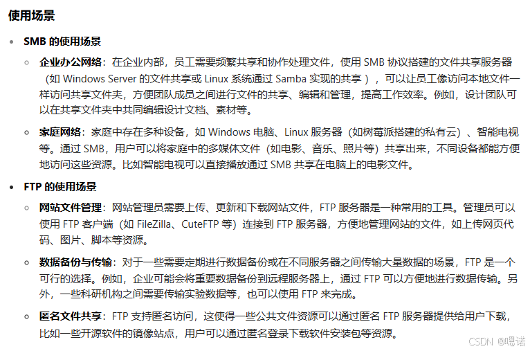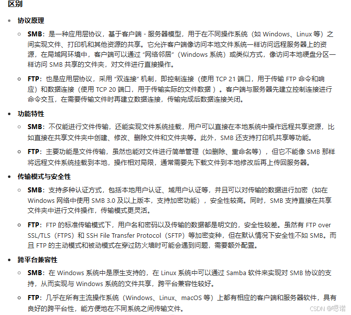 - 技术同源:两者在技术原理上是相通的,都基于客户端 - 服务器模型。客户端向服务器发送请求,服务器处理请求并返回相应的数据。例如,当 Windows 用户在 “网络邻居” 中访问共享文件夹时,就是通过 SMB 或 CIFS 协议与提供共享的服务器进行通信,服务器接收到读取文件的请求后,会对用户进行身份验证,验证通过后,将文件数据返回给客户端。