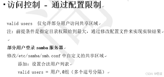 ),才能访问共享资源。 - 验证通过后,权限由 Samba 配置和系统用户权限共同决定(能读能写,甚至能改文件)。