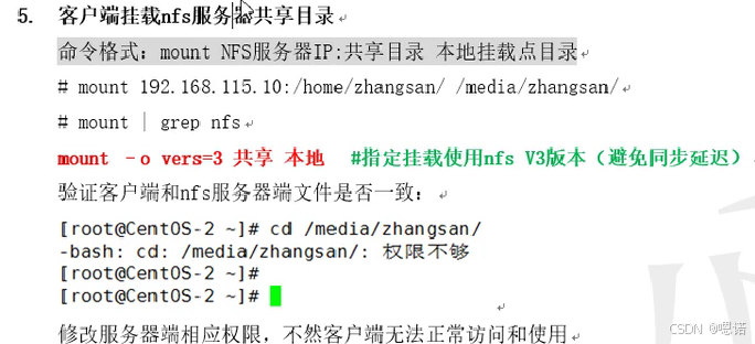 mount -o vers=3 192.168.115.10:/home/zhangsan /media/zhangsan