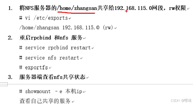 网段,读写权限):/home/zhangsan 192.168.115.0/24(rw)