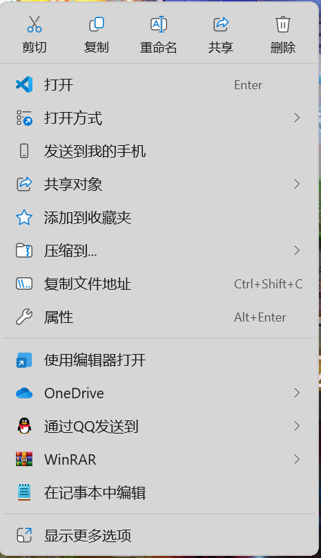 在刚安装好使用vscode时,会发现右键文件或者文件夹所在位置会出现缺少“使用vscode打开的选项”,如下图所示。