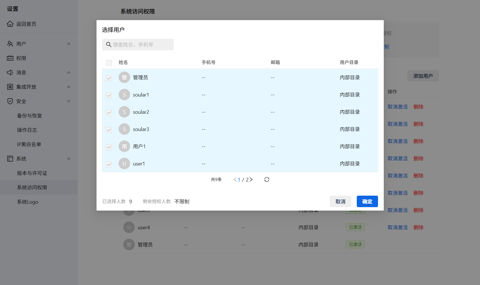 使用用户导入功能添加的用户,若要登录soular,需要先添加到应用访问权限页面。