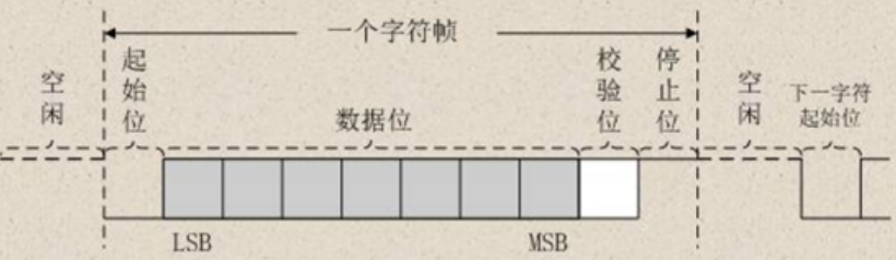 异步通信是接发双方按照各自的时间系统进行数据的接收以及发送,虽然发送方和接收方的时钟可以尽量保持一致,但是并不强求。异步通信以字符构成帧为单位进行数据传输,每个字符会附加2~3位起止位,字符与字符之间会有任意的时间间隔,因此传输效率并不高。