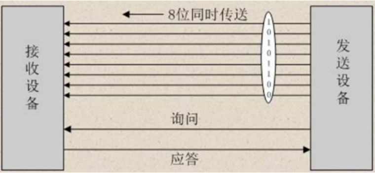 并行通信与串口通信相反,它是可以通过多条线路同时传输数据,并且数据可以多位传输。相较于串口通信,并行通信的信息传输速率更快,控制起来更简单,但是由于用到的数据线较多,所以成本较高,同时很难控制接收方同时接收数据,传输时的抗干扰能力也不强。