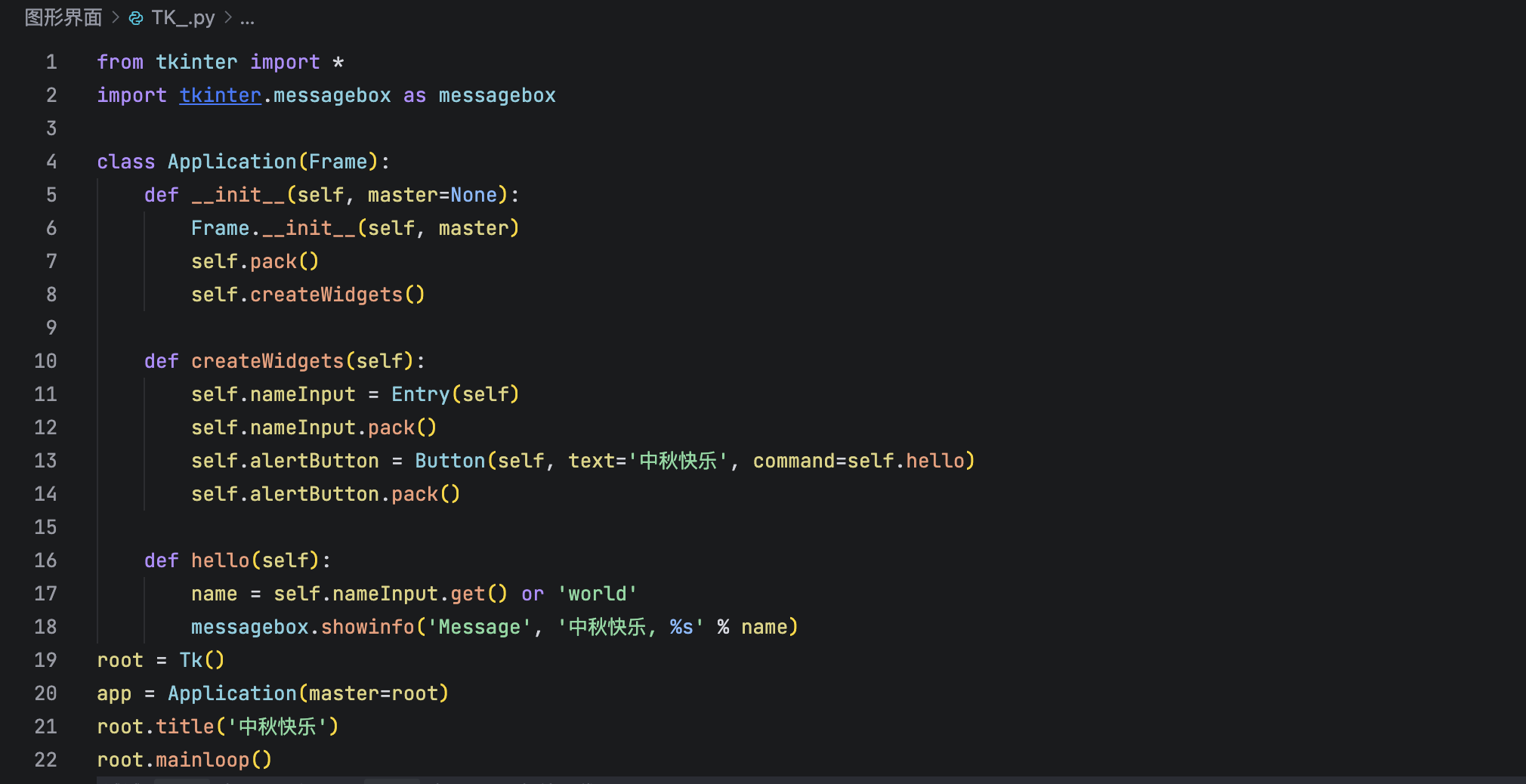 所以,我们的代码只需要调用Tkinter提供的接口就可以了。