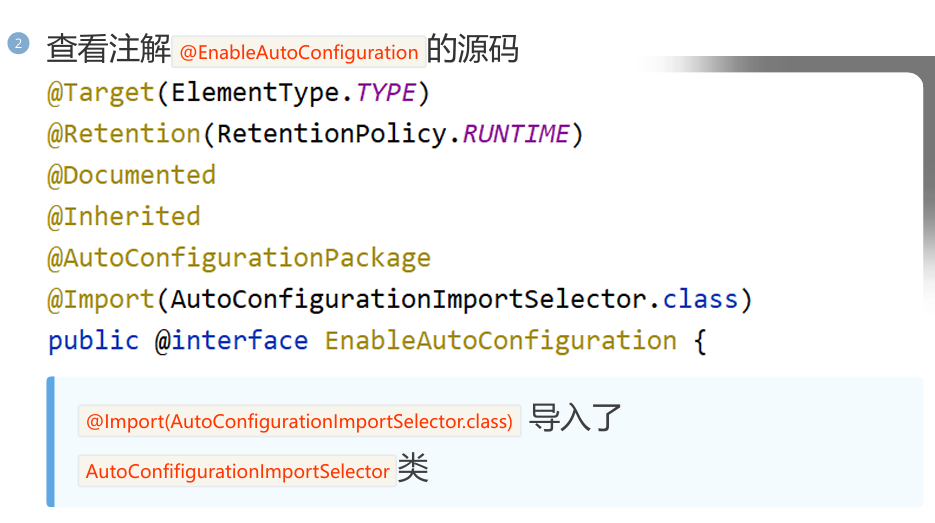 等同于 @AutoConfigurationPackage + @Import(AutoConfigurationImportSelector.class)