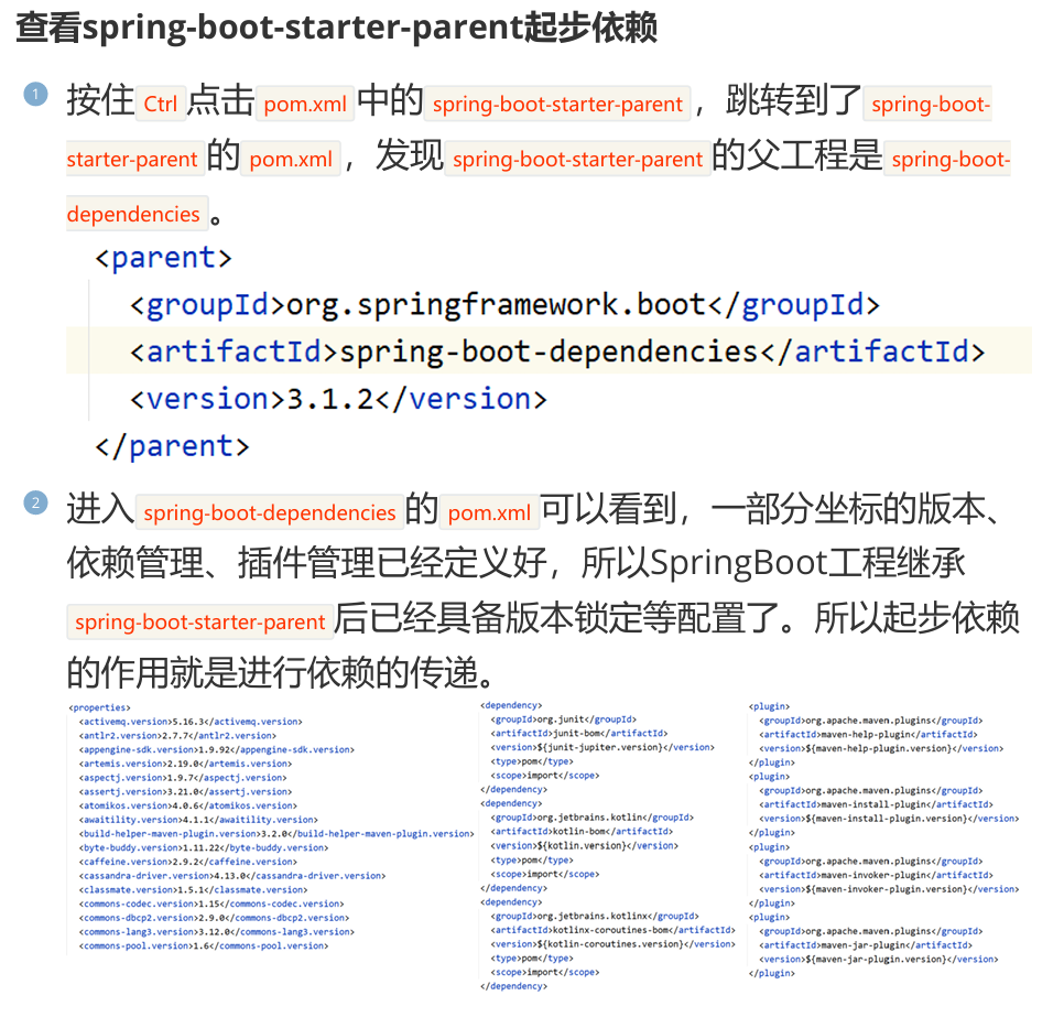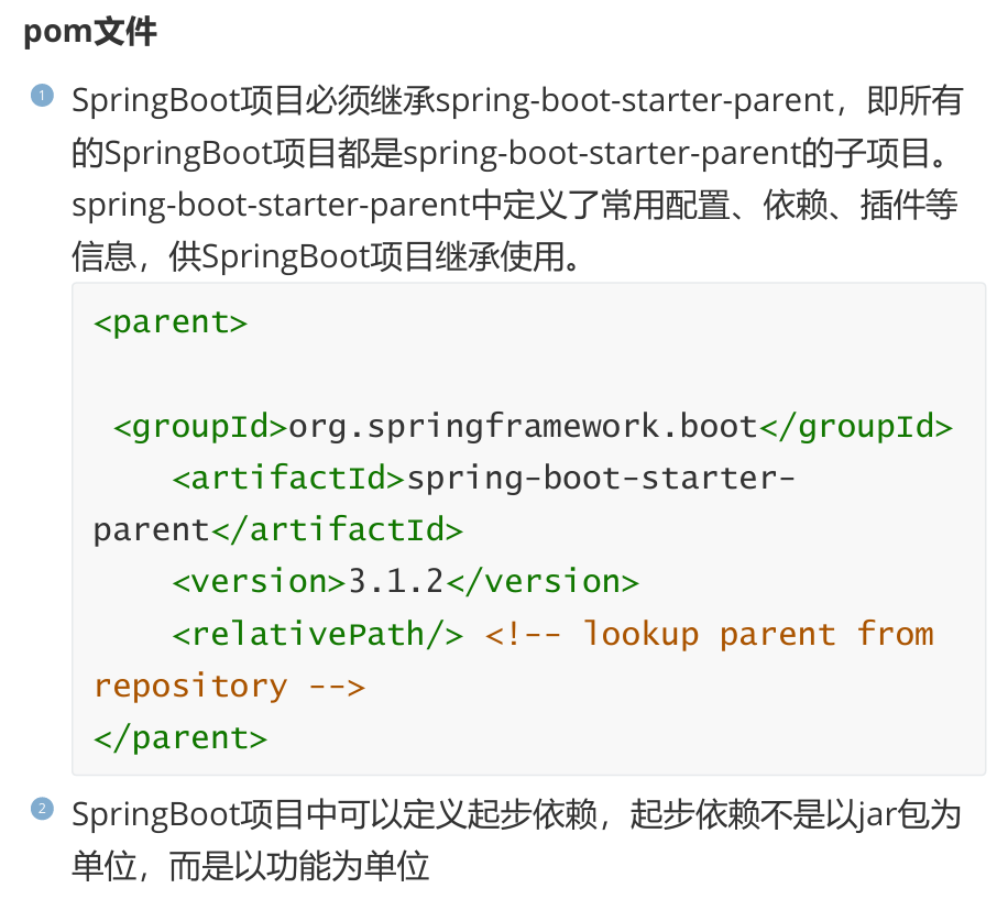<!-- 父工程 --><parent><groupId>org.springframework.boot</groupId><artifactId>spring-boot-starter-parent</artifactId><version>3.1.2</version></parent><!-- 起步依赖 --><dependencies><dependency><groupId>org.springframework.boot</groupId><artifactId>spring-boot-starter-web</artifactId></dependency><dependency><groupId>org.springframework.boot</groupId><artifactId>spring-boot-starter