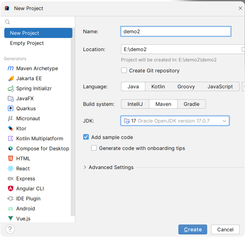1 创建新项目
