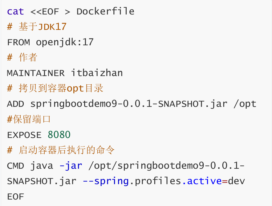 4,由于SpringBoot中嵌入了Web容器,所以在制作SpringBoot项目的镜像时无需依赖Web容器,基于JDK制作镜像即可,接下来我们使用Dockerfile制作镜像: