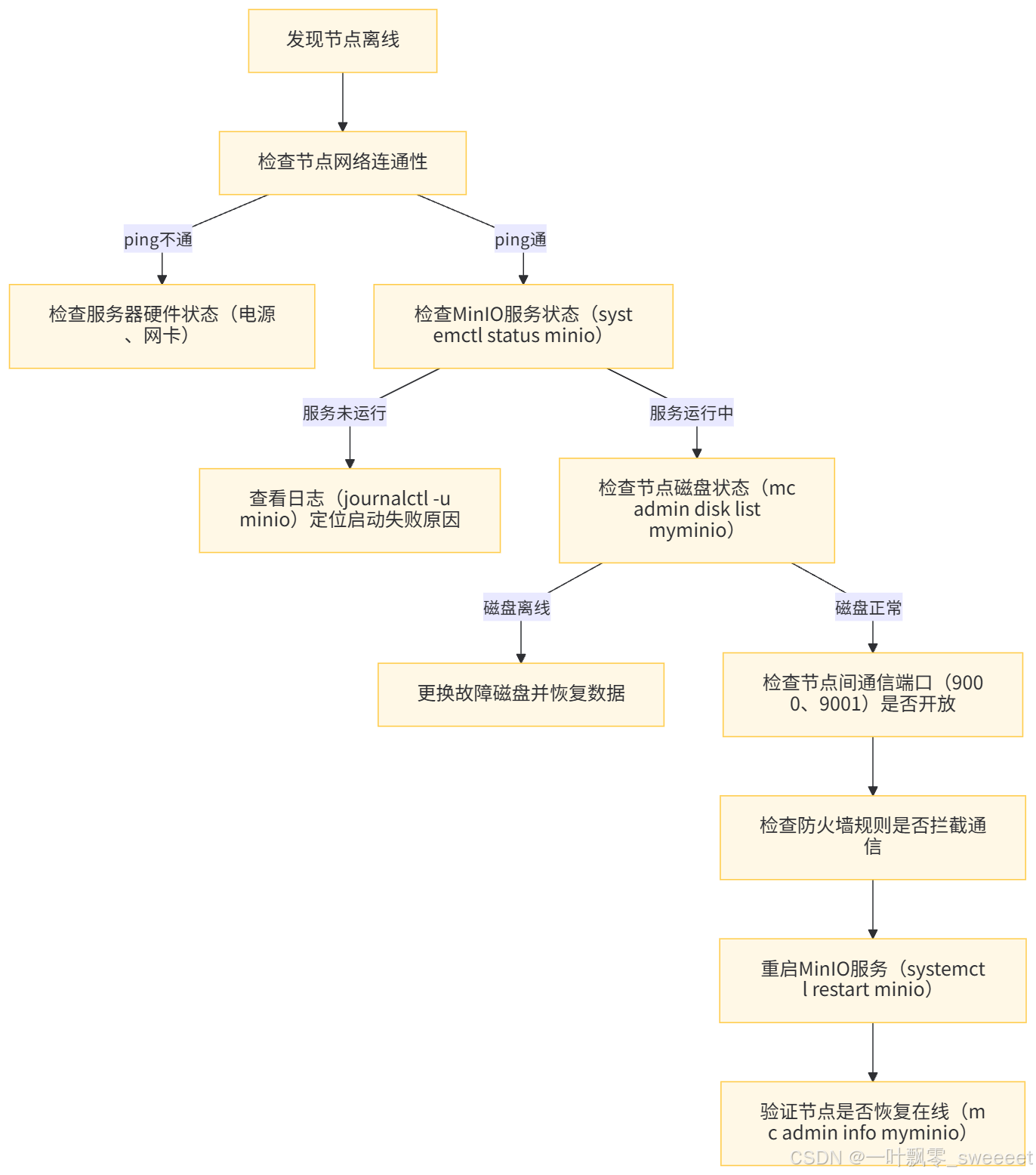 重启服务,通常可恢复节点在线状态 - 磁盘故障处理: