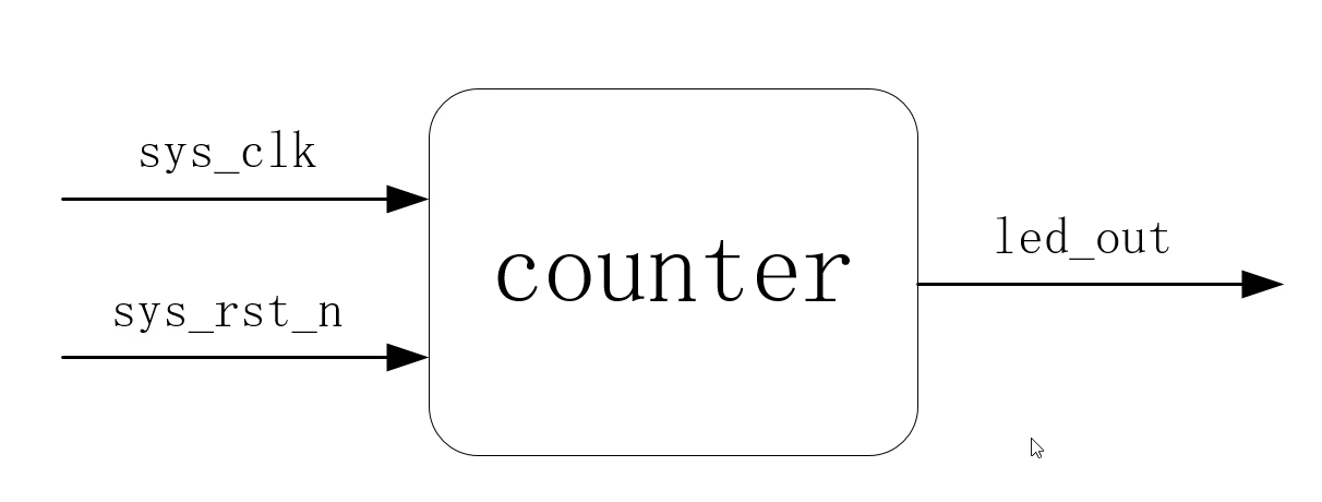 即一个sys_clk图像对应的时间是20ns,那么0.5s就需要 个周期, 设置一个中间计数变量cnt,计数时钟走过的周期数,当时钟每走过了25000个周期后,使得输出取反从而控制LED的亮灭(注意,由于通常是从0开始计数的,那么要走25000000个周期,即计数cnt为0~24999999)