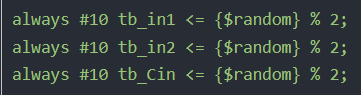 而此前组合逻辑,我们都是给模拟随机输入的情况,因此使用的是随机数,本质其实仿真文件还是去模拟所有的输入情况: