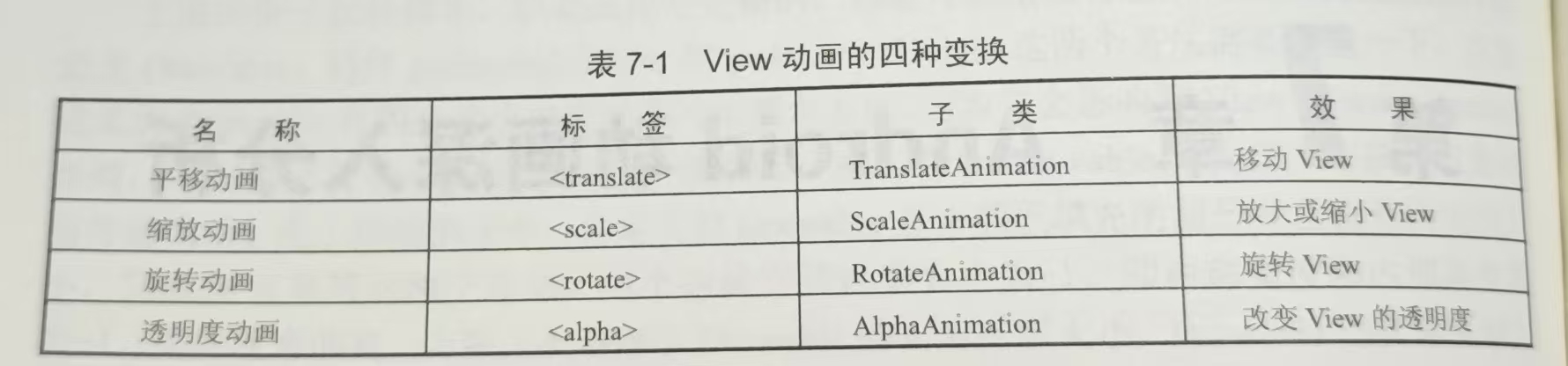 View动画的四种基本效果对应了四个Animation的子类,如下: