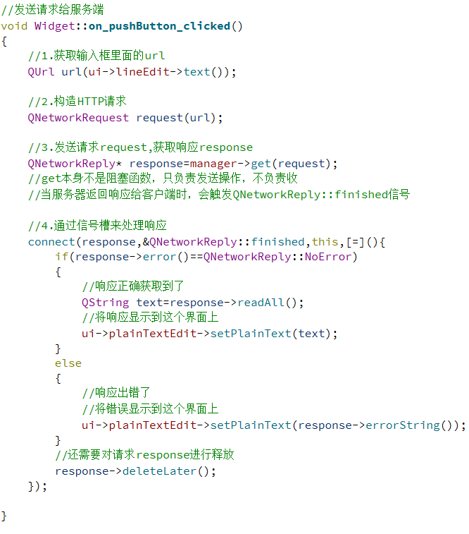 与readyRead信号的区别:readyRead信号是在有数据可读时触发,可能会多次触发(因为数据是分块到达的)。而finished信号只触发一次,即在请求完全结束时。