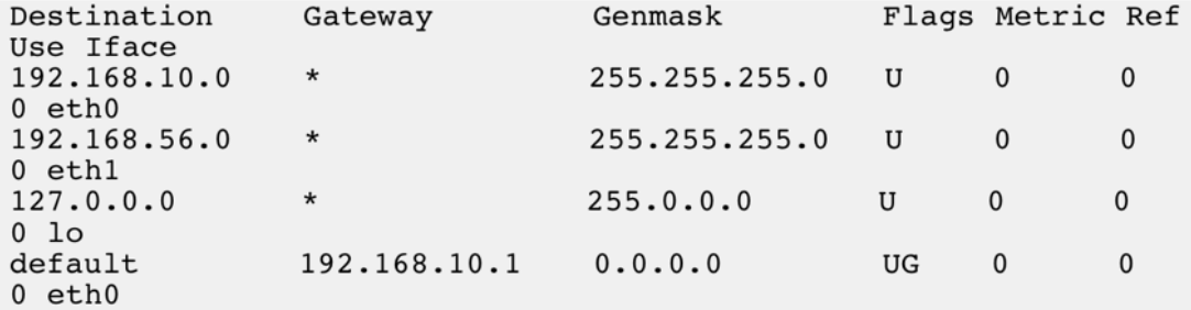 - 匹配缺省路由条目,从eth0 接口发往192.168.10.1路由器。