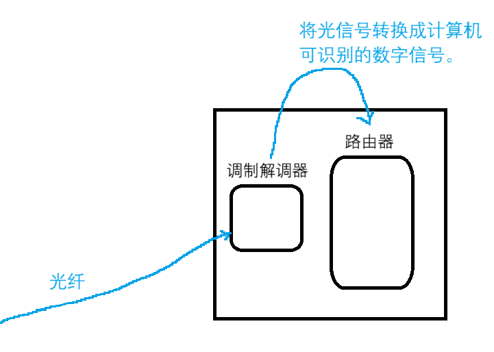 无论是在城镇、农村还是城市,若想在家中上网,首先需要联系电信、移动等运营商,由工作人员将网线(城市一般为光纤)拉进家中。光纤内部有一根蓝色玻璃丝,用于传输光信号(一种模拟信号)。光纤入户后会先连接到调制解调器(俗称“猫”),其核心作用是将光信号转换成计算机可识别的数字信号。数字信号随后传输给路由器,由路由器负责将网络信号分发到家中的各个设备。