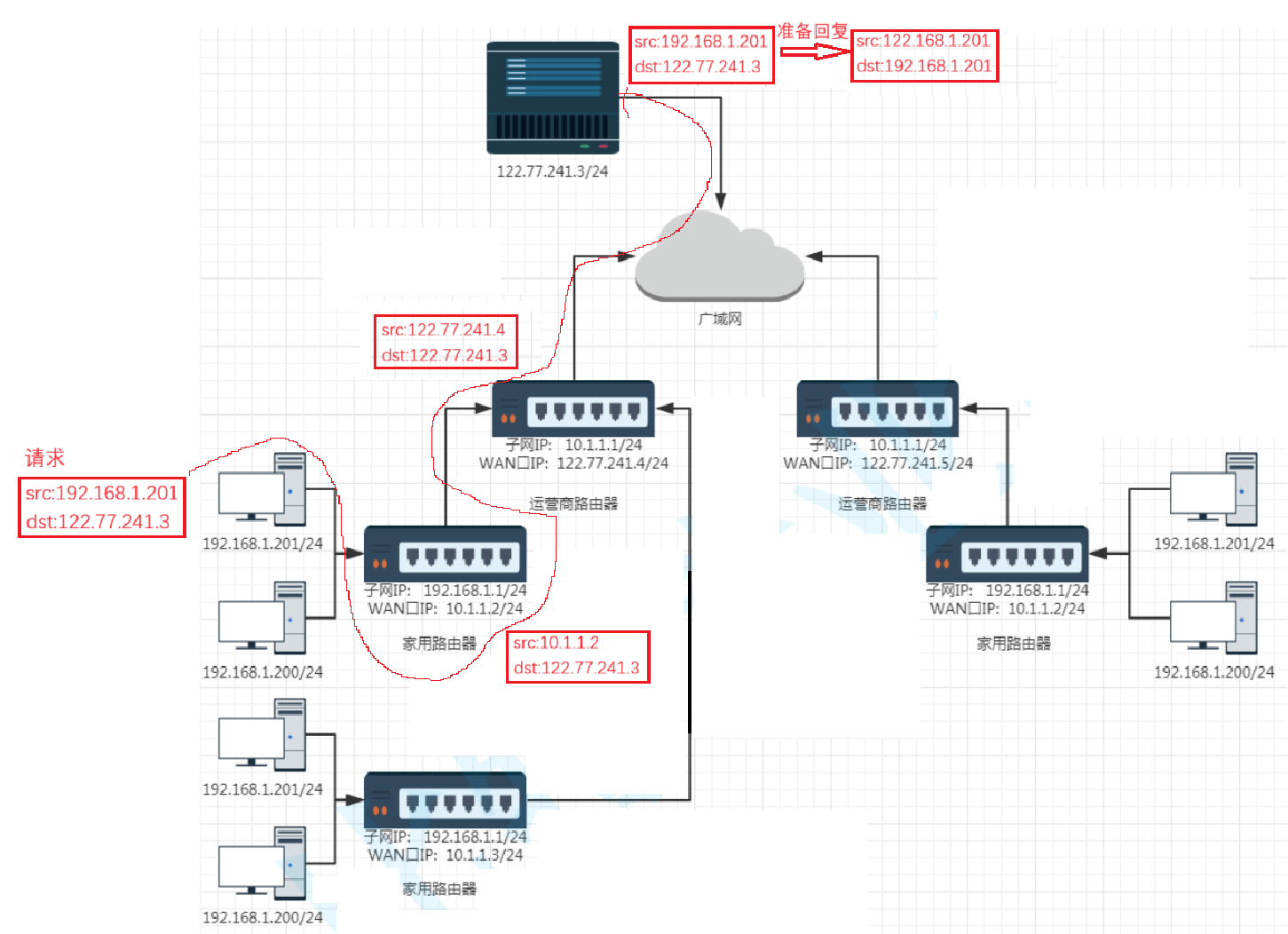 - 问题:互联网用户激增导致 IPv4 地址紧张,地级市层级无法为用户分配独立公网 IP。