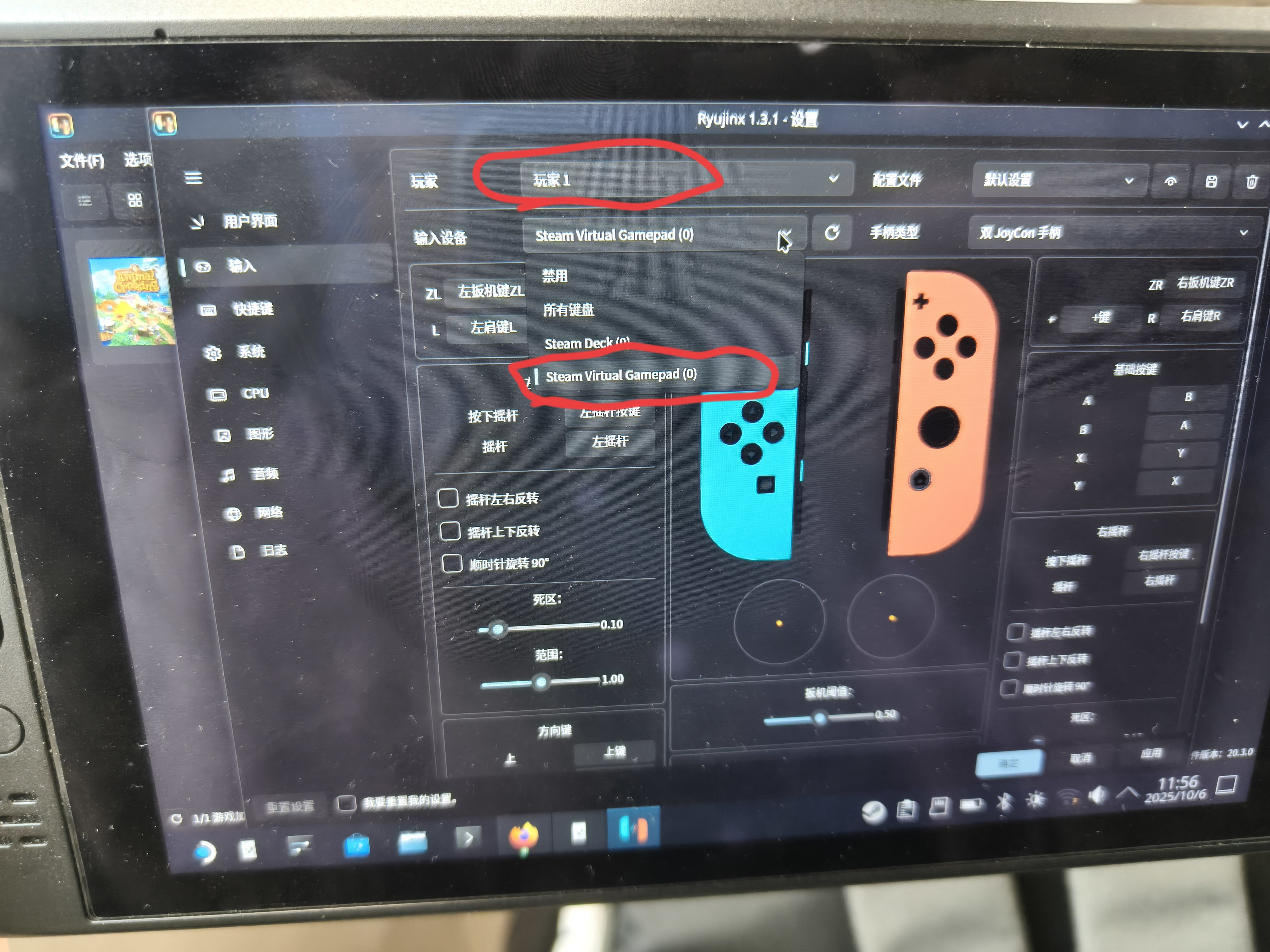 steamdeck 龙神Ryujinx模拟器输入控制器无效