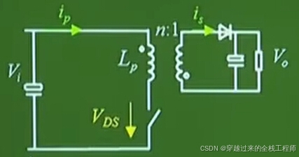 期间,mos管导通,副边二极管截止时,