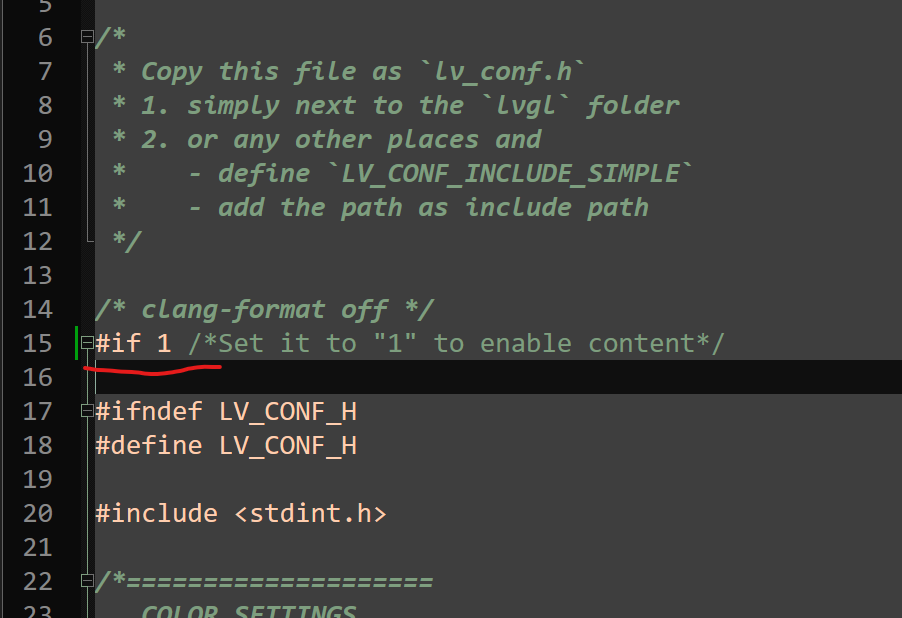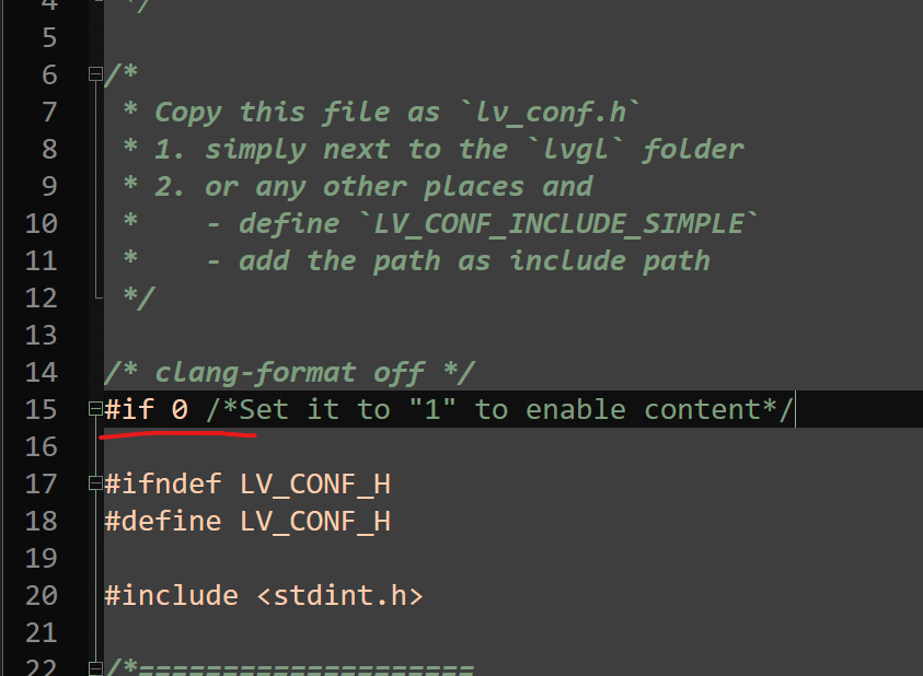 之后打开 lv_conf.h 文件,修改条件编译指令