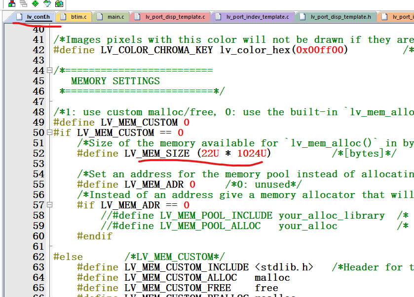 提示空间不够,则需要修改此处宏定义,减少LVGL的内存分配,这里我从默认值48改为了22即可运行。