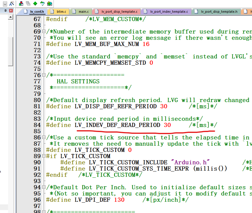 把上图中的 lv_conf_template.h 文件改名为 lv_conf.h