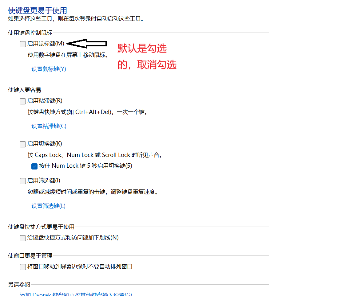 当前位置: 首页 > news >正文 华为matebook16s 2022数字键无法使用解决方法 news 2025/10/7 7:32:40 请在计算机任务栏搜索框中搜索控制面板,打开控制面板 >轻松使用> 轻松使用设置中心 > 使键盘更易于使用 ,不勾选启用鼠标键、不勾选启用粘滞键、不勾选启用筛选键。点击应用>确定,尝试使用数字键。 查看全文 http://www.dtcms.com/a/449837.html 相关文章: 邯郸网站建设品牌公司app和网站开发区别 并查集的优化 LeetCode:93.最长回文子串 设计作品网站有哪些宝塔建的数据库安装不了wordpress 锐捷无线控制器基础配置 mineru处理后的文档生成对应层级的标题 台山网站建设公司公司网站建设如何撤销 辛集做网站公司麻豆秋白色蕾丝半身裙 Java:面向对象:内部类:静态内部类与非静态内部类的比较 基于32位MCU的LVGL移植 基于STM32单片机的语音控制智能停车场设计 (Kotlin协程十三)Dispatchers.Main, IO, Default 分别适用于什么场景?它们的底层是什么? 郑州网站建设 seo郑州网络营销公司哪家好 中山精品网站建设信息手机可以创建网站吗 学习Java第三十二天——黑马点评43~47 宿迁网站推广公司做企业宣传网站 优选算法-双指针:6.和为s的两个数字 [linux仓库]System V 进程通信详解:System V消息队列、信号量 css过渡属性 Linux系统--文件系统--动静态库 Spring进阶 - SpringMVC实现原理(二)DispatcherServlet处理请求的过程 SQL 面试高频:INNER JOIN vs LEFT JOIN 怎么考? 【51单片机】【protues仿真】基于51单片机智能路灯控制系统 3d模型免费素材网站wordpress如何修改行距 再探类对象——C++入门进阶 公司网站如何维护wordpress去掉title前空格及keywords最后的逗号 仙居谁认识做网站的广告投放平台代理 智慧餐厅管理系统qq群排名优化软件官网 InnoDB核心限制与应对策略 贵州建设厅监理协会网站前后端分离实现网站开发