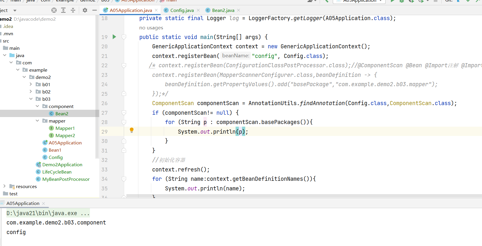 下面是一步步模拟@ComponentScan注解的实现原理,首先需要找到扫描的包。