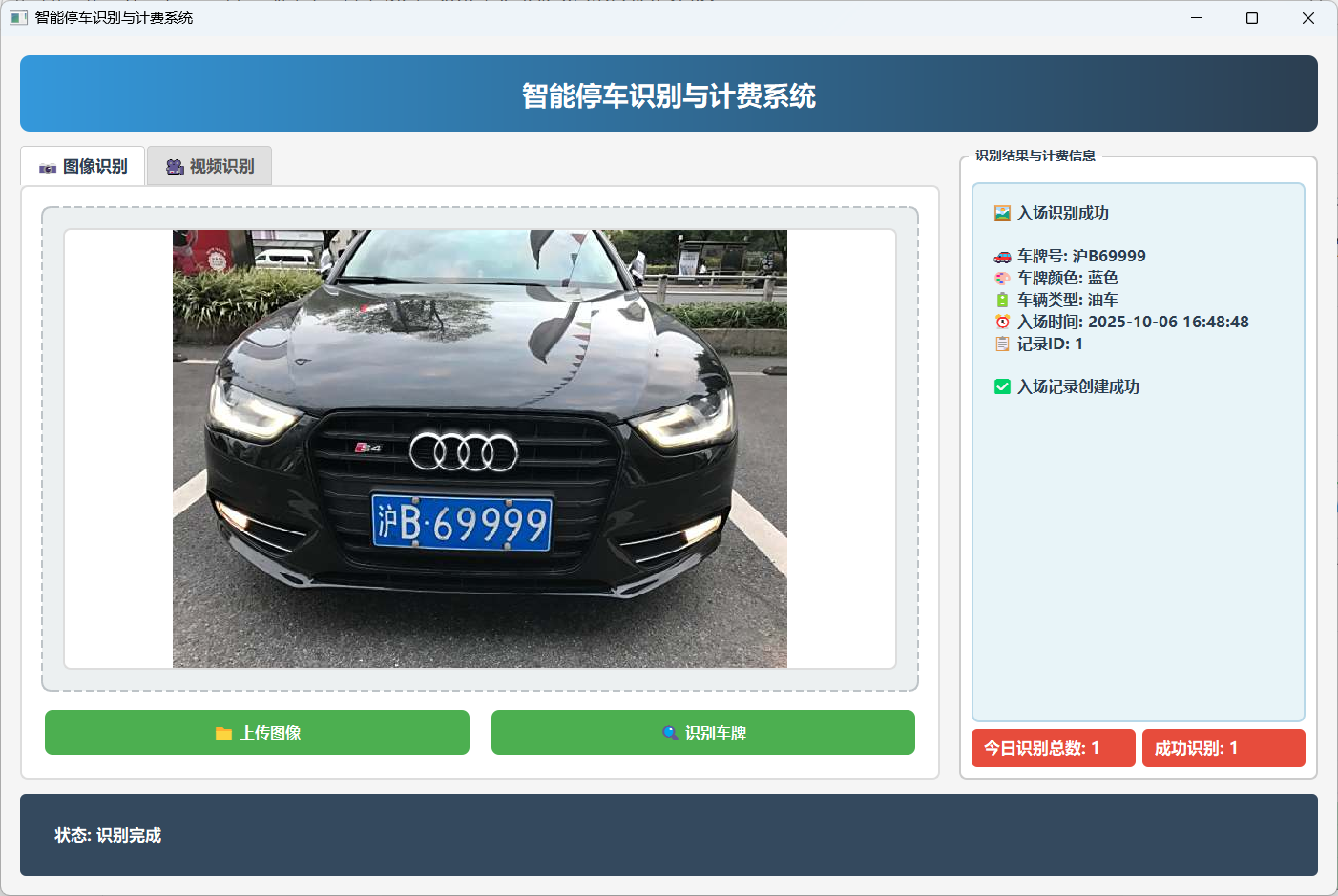 - 蓝牌识别准确率:98.5%