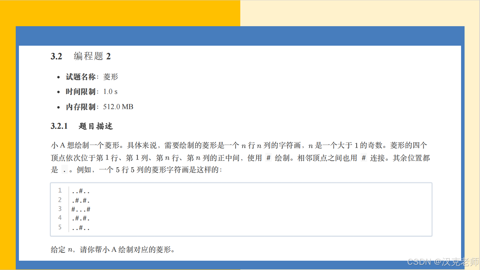 GESP2025年9月认证C++二级( 第三部分编程题(2)菱形)
