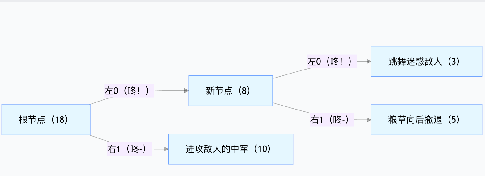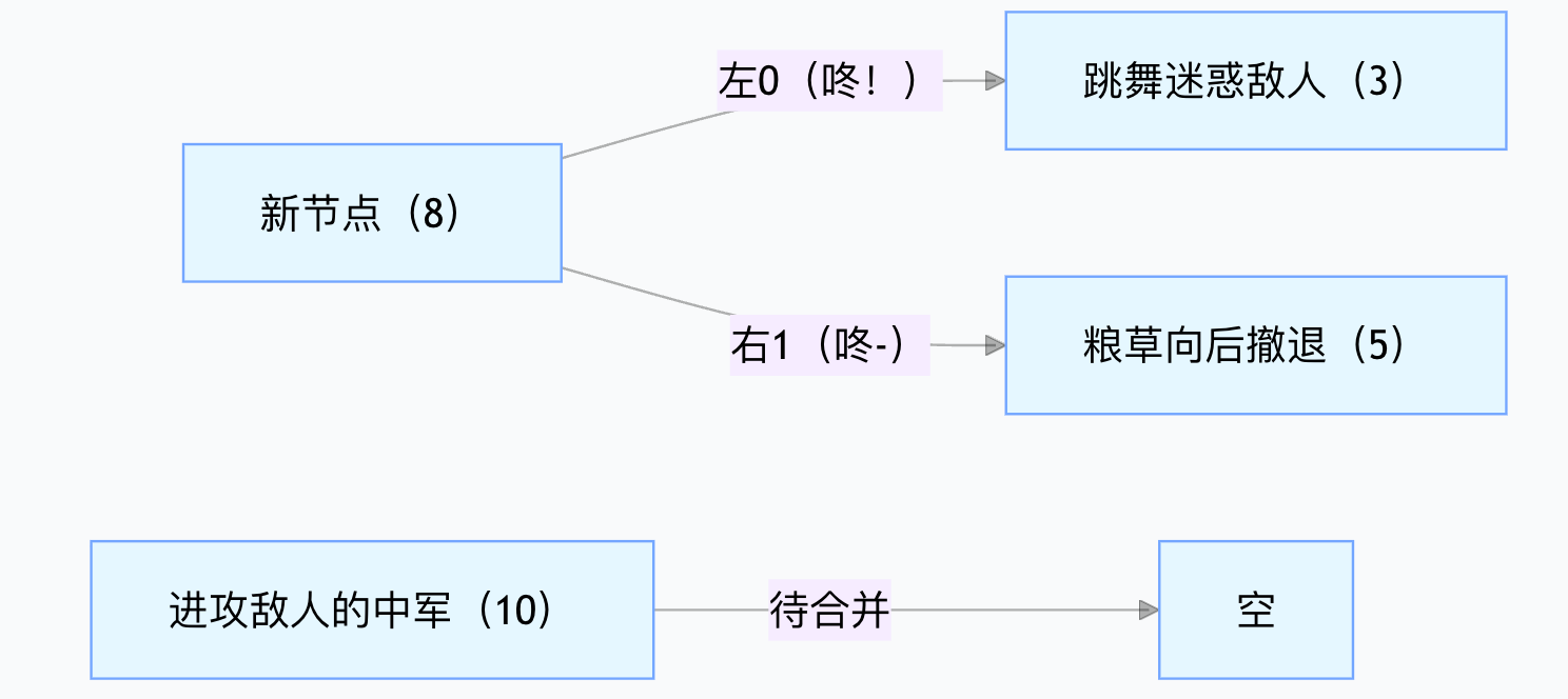 现在待合并节点变为:新节点(8)、进攻敌人的中军(10),按频率升序:8 < 10