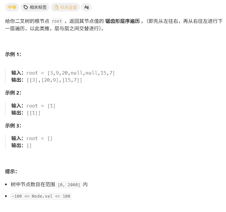 103. 二叉树的锯齿形层序遍历