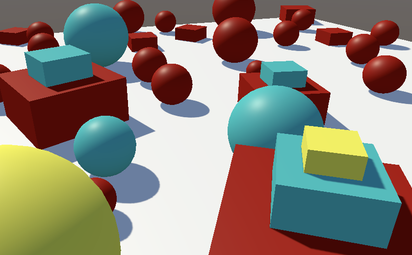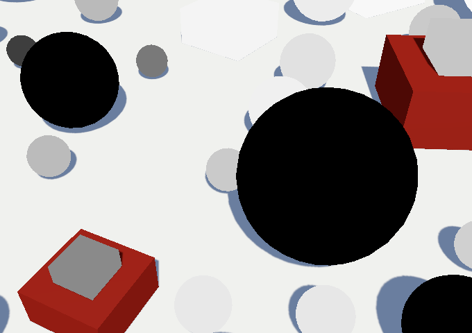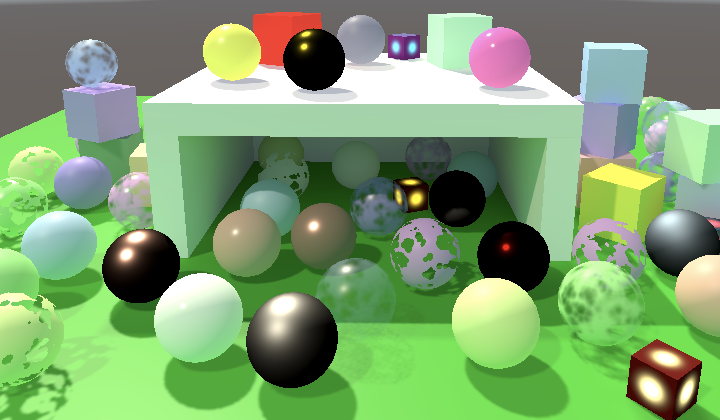 另一个为场景增添细节和真实感的现象是环境镜面反射(镜子是最明显的例子),我们目前尚未支持这一功能。这对于金属表面尤其重要,因为目前它们大多呈现黑色。为了更清楚地展示这一点,我在烘焙光照场景中添加了一些具有不同颜色和光滑度的新金属球体。