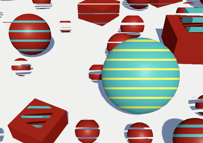 我们得到了条纹状渲染效果,但在交叉淡入淡出时两个LOD级别中只有一个显示出来。这是因为其中一个具有负的淡入淡出因子。我们通过在此时改为添加(而非减去)抖动图案来解决这个问题