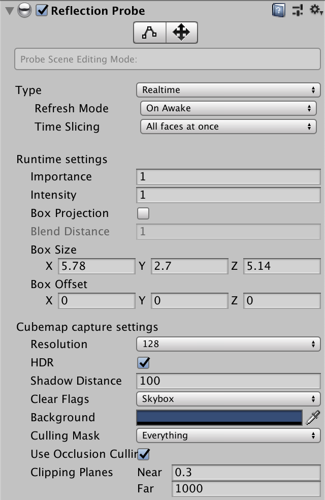 Simple reflection probes mode selected 已选择简单反射探针模式
