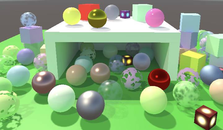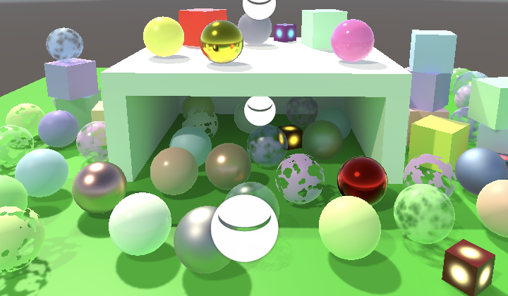 每个物体仅使用一个环境探针,但场景中可以存在多个探针。因此您可能需要分割物体以获得理想的反射效果。例如,构建建筑结构的立方体最好拆分为内部和外部两部分,以便分别使用不同的反射探针。这也意味着GPU批处理会因反射探针而中断。遗憾的是,网格球体完全无法使用反射探针,最终只能使用天空盒的反射。
