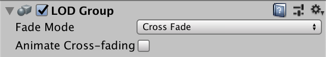 LOD级别的突然切换在视觉上会显得很突兀,特别是当物体因自身或摄像机的轻微移动而快速连续切换时。可以通过将组的淡入淡出模式设置为交叉淡入淡出来实现渐进式过渡——旧级别淡出的同时新级别会同步淡入