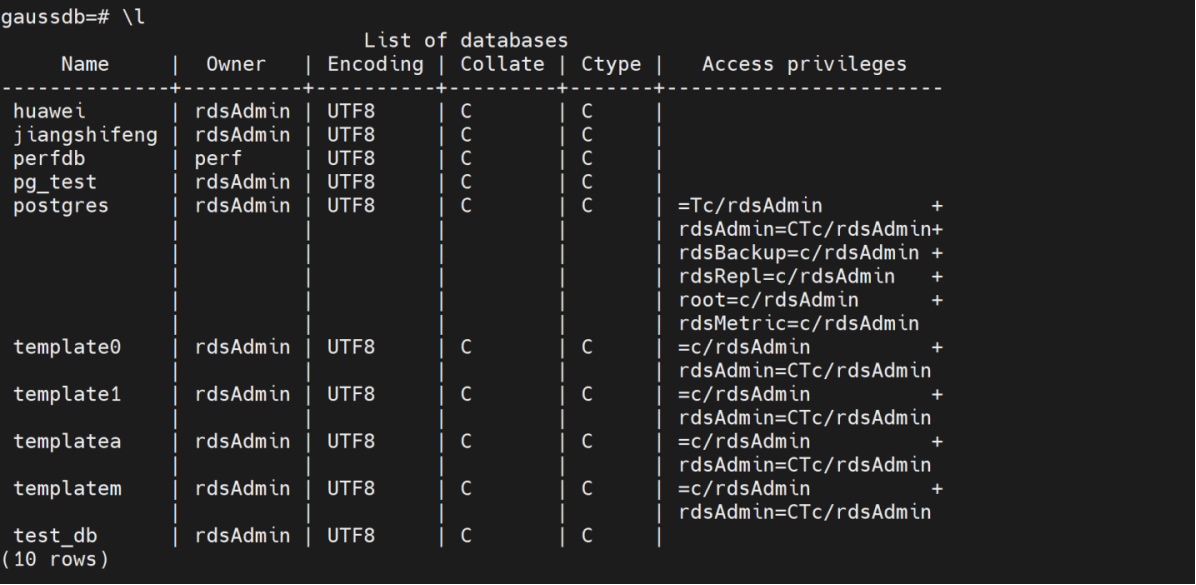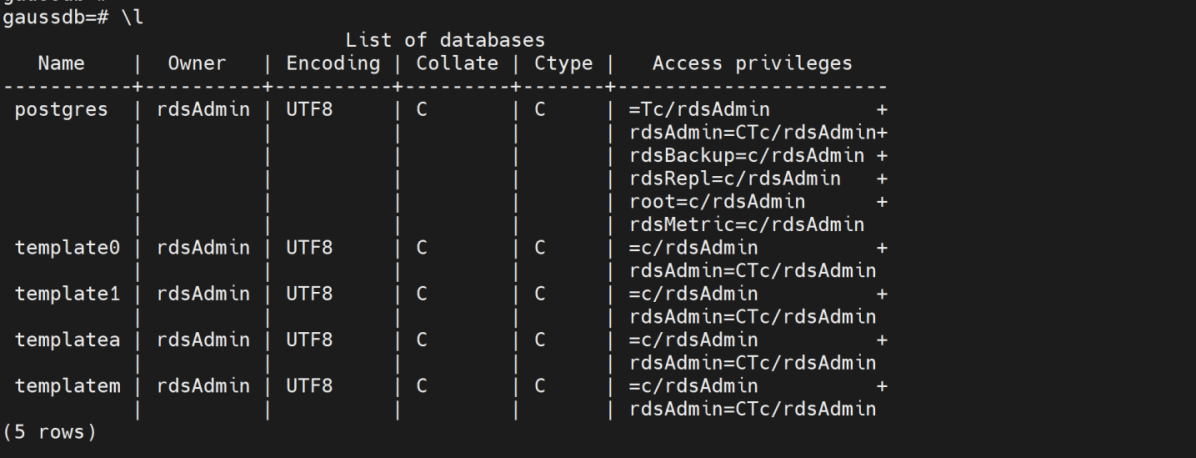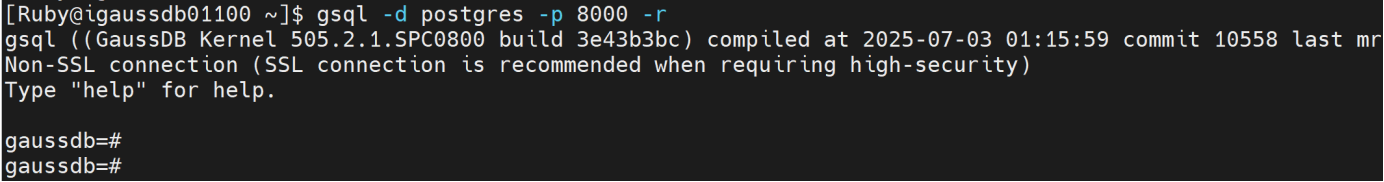 gsql -d postgres -p 8000 -r