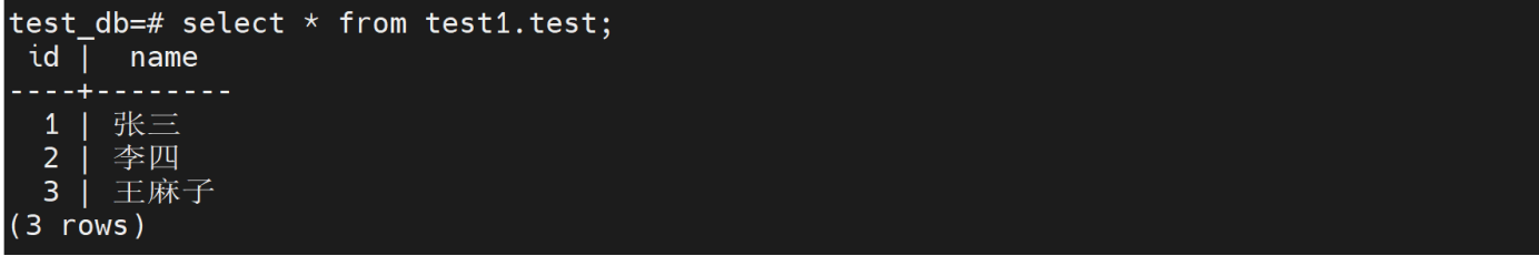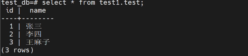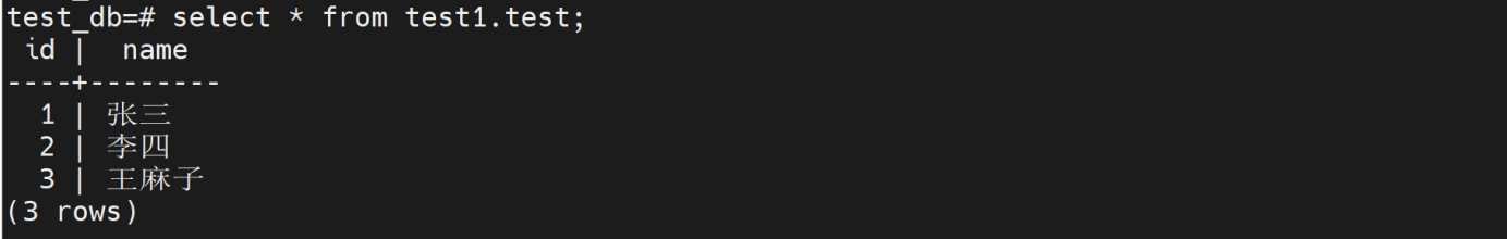 insert into test1.test values(3,'王麻子');
