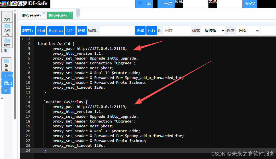 端口的后端服务,并进行一系列与 WebSocket 相关的头信息设置和超时设置。可以理解为修仙者又开辟了一条类似但功能可能稍有不同的灵力通道,这条通道连接到另一处灵力源泉(21119