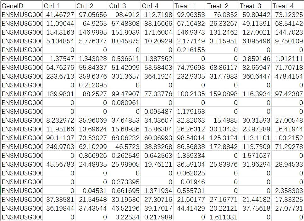 注:额外说一下,就是txt文件是可以使用表格工具打开查看的,生信分析中.txt/.xlsx等只是存储数据的格式而已,重要的是存储时数据分割形式,后缀意义并不大(仅限于像这种矩阵哈)。