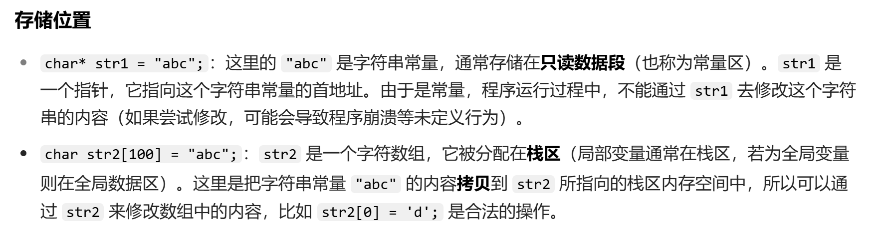 {char* str1 = "abc";char str2[100] = "abc";char str3[5] = { 'q','w','e','r' ,'\0' };printf("---------------------strcmp(比较)---------------------------\n");int res = strcmp(str1, str2);printf("%d\n", res);return 0;