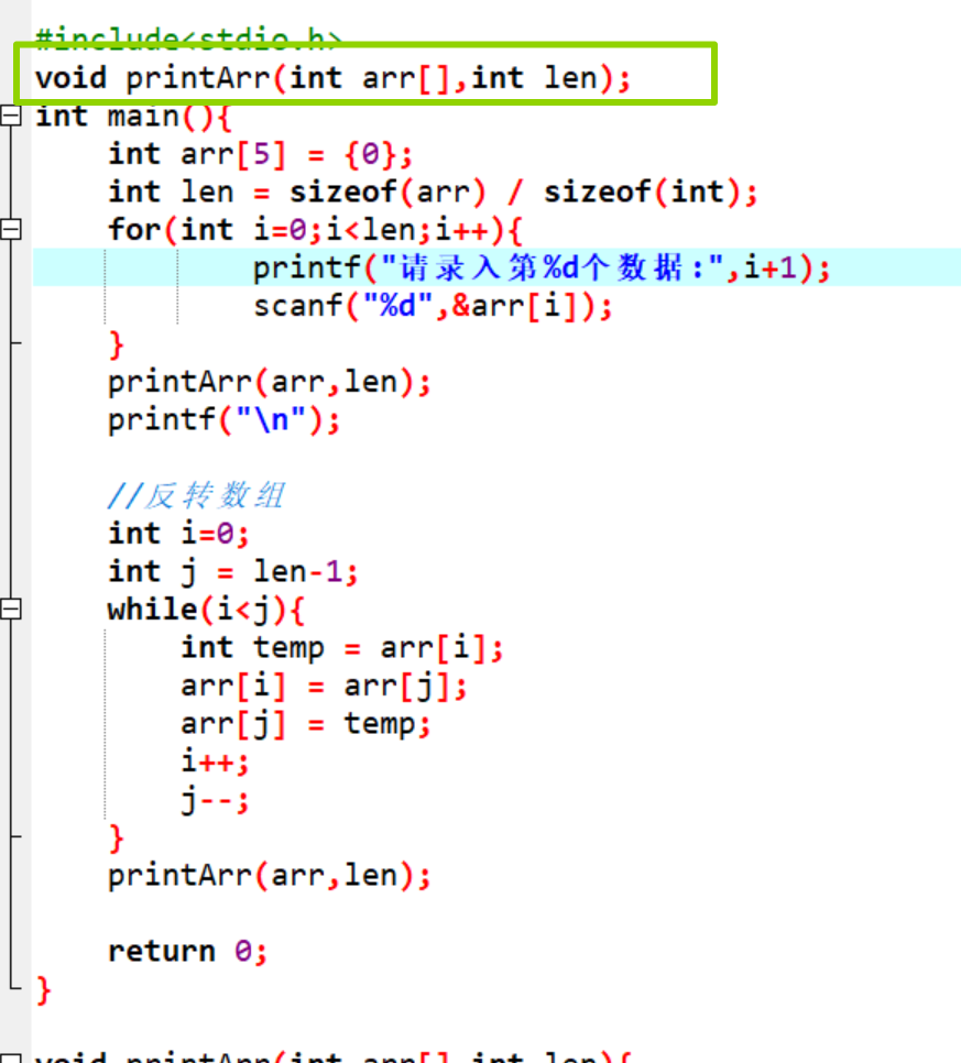 {/*练习:利用指针遍历数组*///1.定义数组int arr[] = { 10,20,30,40,50 };int len = sizeof(arr) / sizeof(int);//2.获取数组的指针//实际上获取的:数组的首地址int* p1 = arr;int* p2 = &arr[0];printf("%d\n", *p1);printf("%d\n", *(p1 + 1));//要是不加( ),相当于先获取到10,再拿着10+1,结果是11//改进:利用循环和指针遍历数组获取里面的每一个元素for (int i = 0; i < len; i++){printf("%d\n", *p1);p1++;//或者改成printf("%d\n",*p1++);}return 0;