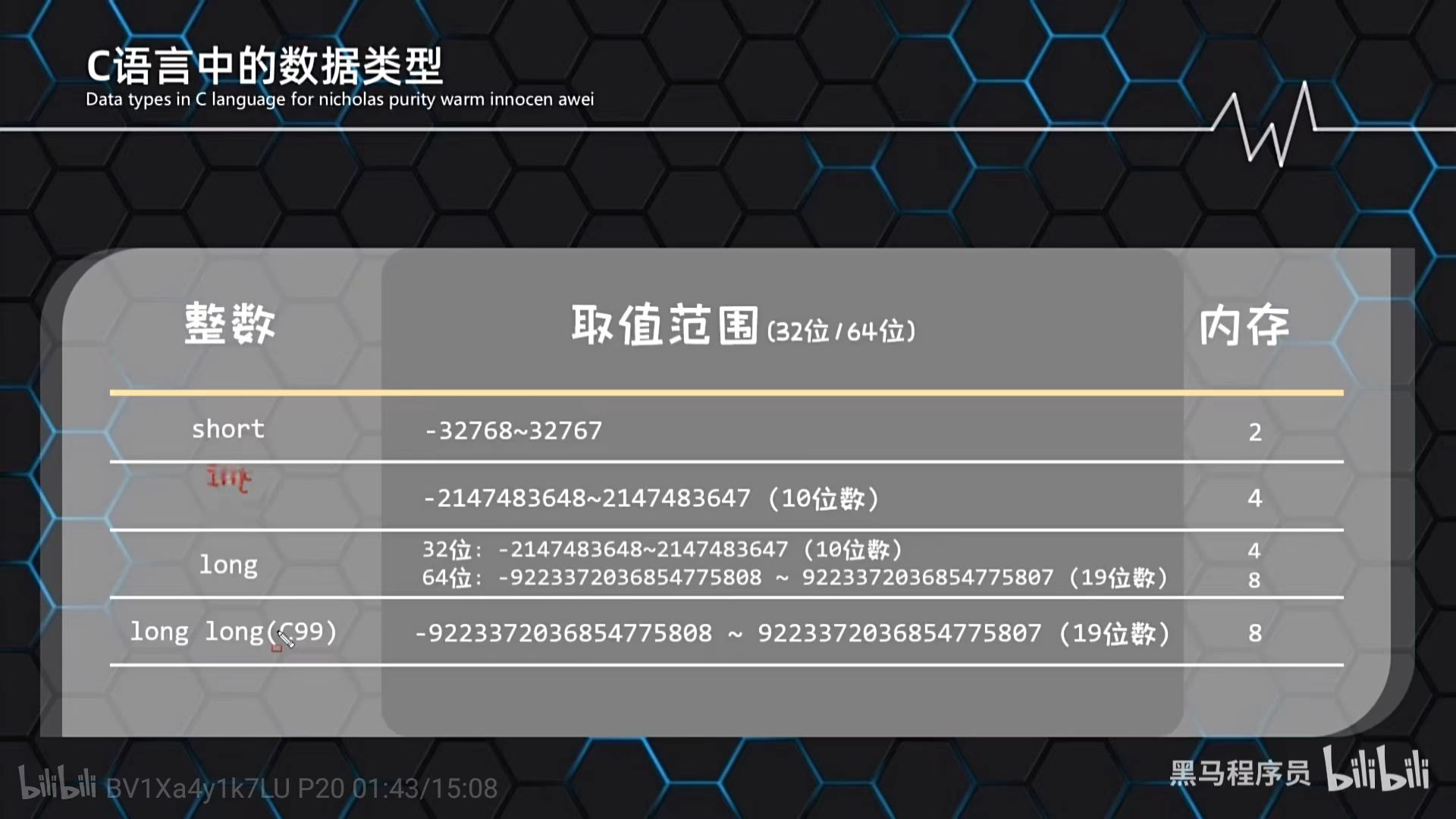 printf("%d\n", b);//long 长整数 windows 4个字节 (-2147483648~2147483647)