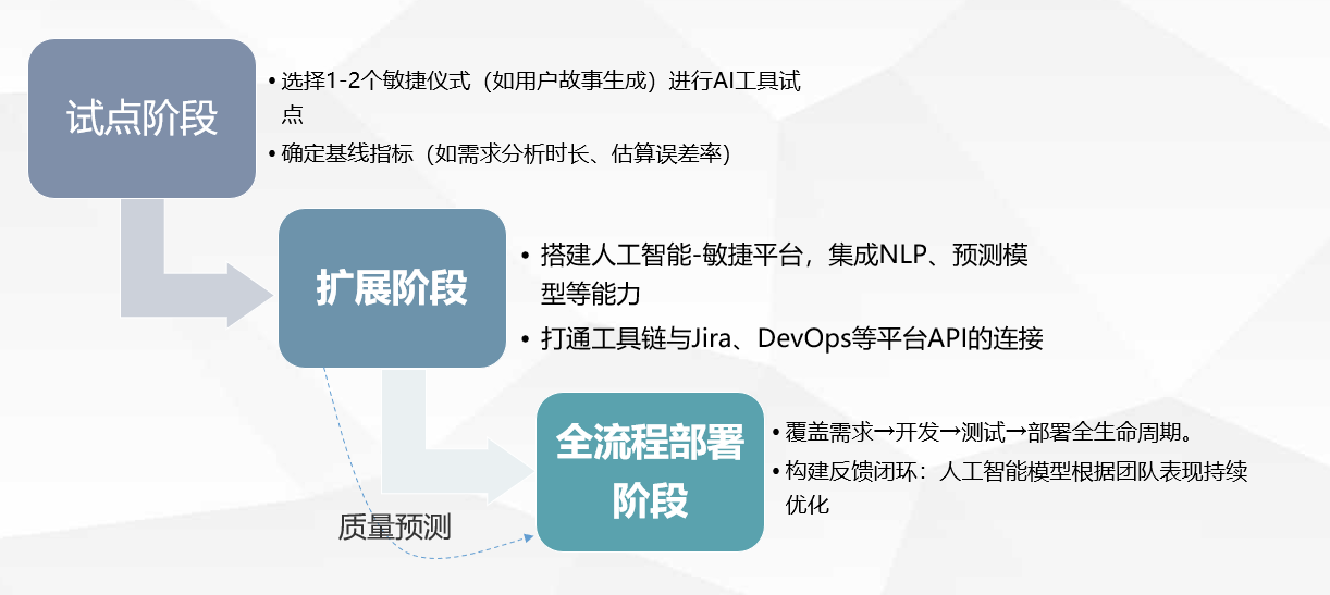 - 这一步是 “从单点试点,向多环节扩展,让 AI 能力渗透到更多敏捷场景中”。