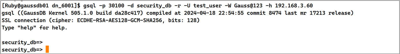gsql -p 30100 -d security_db -r -U test_user -W Gauss@123 -h 192.168.3.60