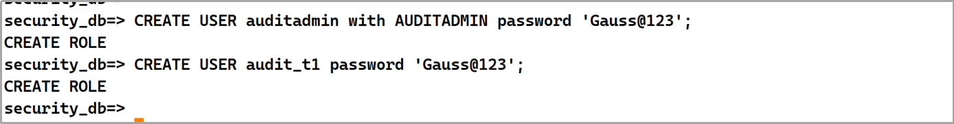 CREATE USER auditadmin with AUDITADMIN password 'Gauss@123';