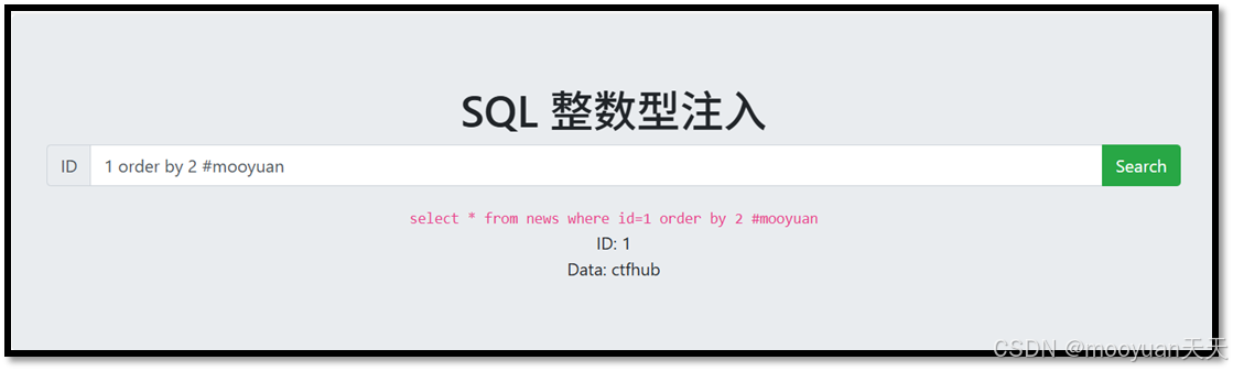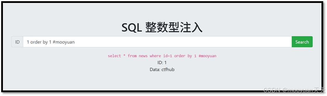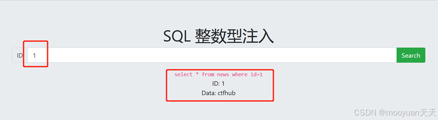 根据提示在页面输入1,此时URL的参数变为/?id=1,本关卡为数值型,猜测id就是注入点。